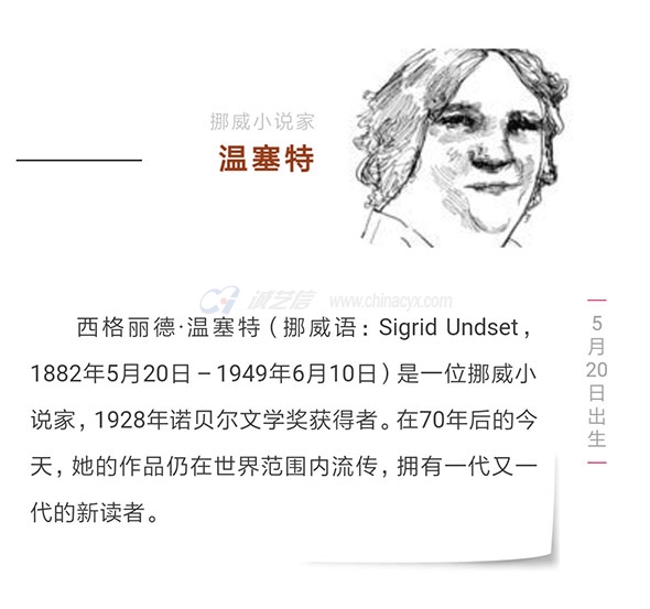中文名:西格丽德·温塞特;外文名:SigridUndset;国籍:挪威;出生日期:1882年5月20日;逝世日期:1949年6月10日;小说家,1928年诺贝尔文学奖获得者。