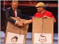 受团中央及中央电视台的邀请,漫画家张汉忠在央视节目现场与英国前首相布莱尔见面,并为他创作了三幅水墨漫像,分别是:活力年代、执政年代和演讲年代。..