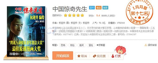 2016年12月9号,《中国惊奇先生》于腾讯动漫点击量突破60亿。2017年2.5号,《中国惊奇先生》再于腾讯动漫平台点击量突破70亿。时隔两个月,《中国惊奇先生》点击量达到10亿次,平均日点击量将近2000万。两个月,《中国惊奇先生》奇迹般的创造了10亿点击量。同时也是腾讯动漫平台最快突破1亿、10亿、20亿、30亿记录的创造者与保持者。
