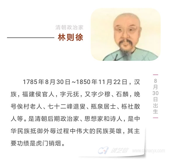 1785年--林则徐,清朝后期著名政治家、思想家和诗人,民族英雄。