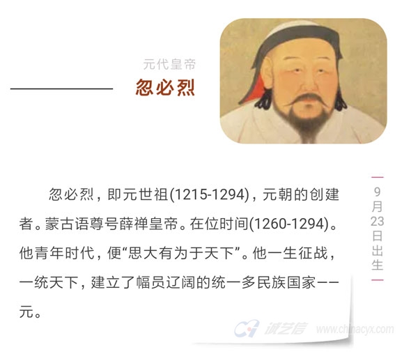 1215年——忽必烈,蒙古大汗,元朝皇帝。