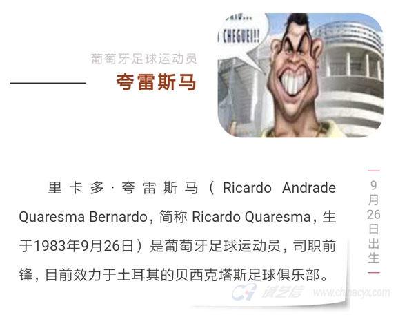 1983年——里卡多·夸雷斯马,葡萄牙著名足球运动员。
