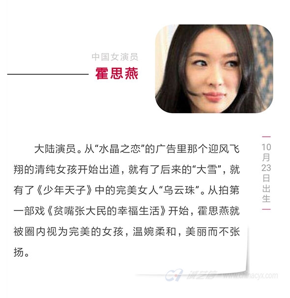 1980年——霍思燕,大陆女演员。