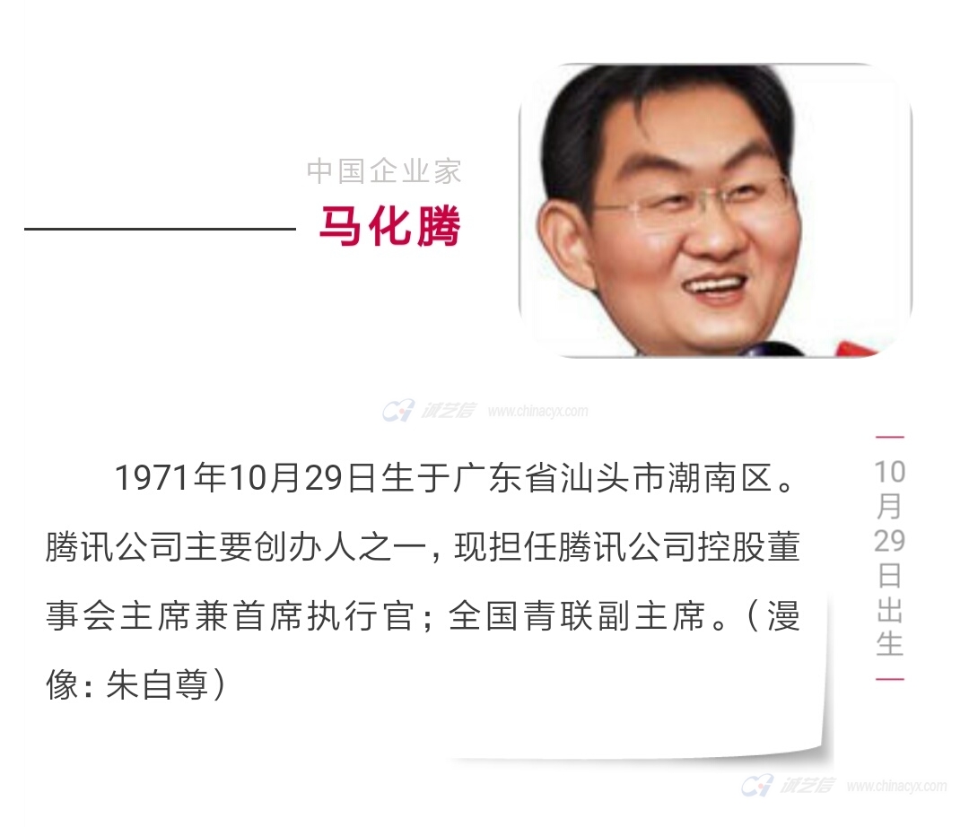 今日推荐名人:腾讯总裁马化腾(漫像:朱自尊)