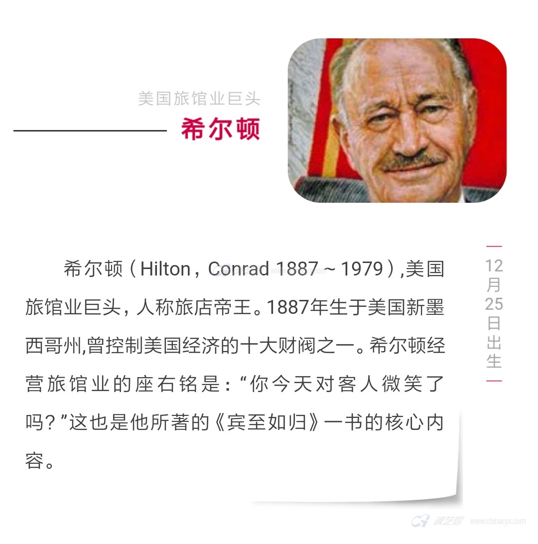 1887年——希尔顿,美国企业家希尔顿饭店创始人。