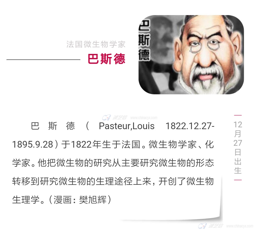 1882年——路易·巴斯德,法国化学家、微生物学家 。(漫画:樊旭辉)