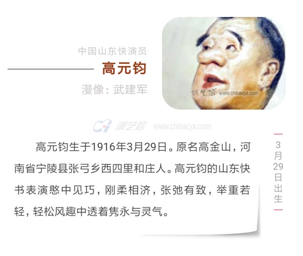 肖像漫画作者:武建军;中文名:高元钧;外文名:GaoYuanjun;国籍:中国;民族:汉;出生地:河南省宁陵县张弓乡西四里。