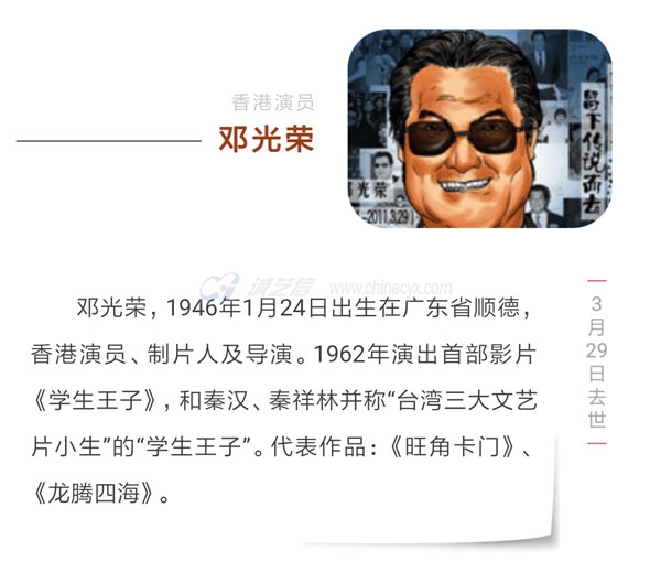 中文名:邓光荣;外文名:Alan Tang Kwong Wing;出生地:广东省顺德;出生日期:1946年1月24日;逝世日期:2011年3..