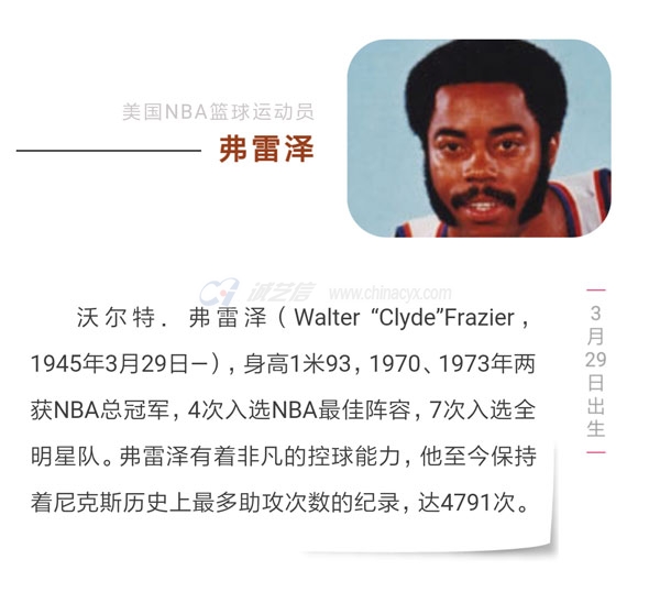 中文名:沃尔特·弗雷泽;国籍:美国;出生地:休斯顿;出生日期:1945年3月29日;身高:193cm;运动项目:篮球。